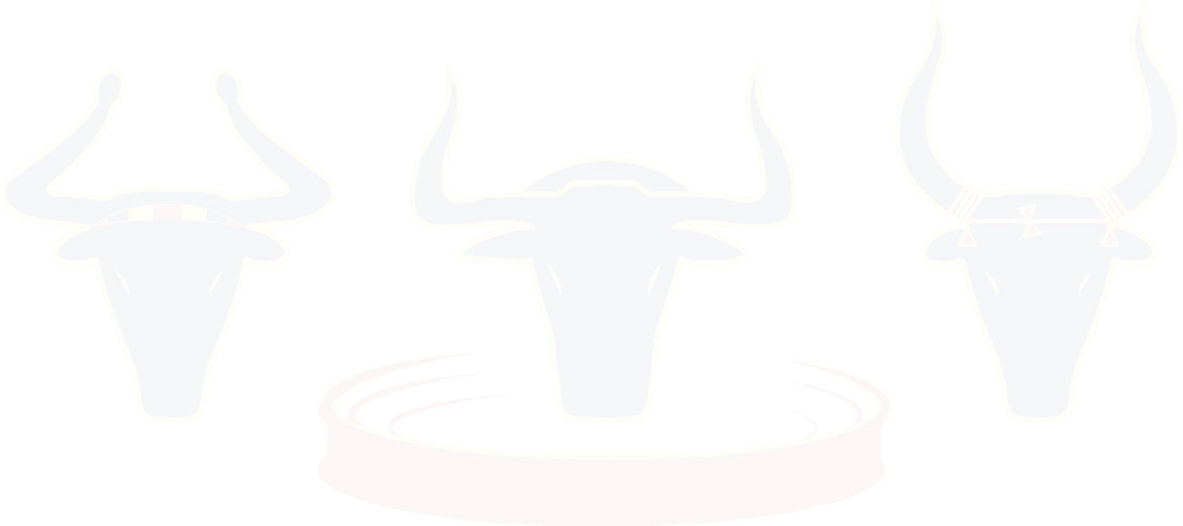 Trois têtes symbolisent les trois formes d’art taurin : la course landaise avec la têtière au frontal de la vache, le toro roi de l’arène pour la corrida et le « biou » de Camargue avec ses attributs accrochés au frontal de l’animal.